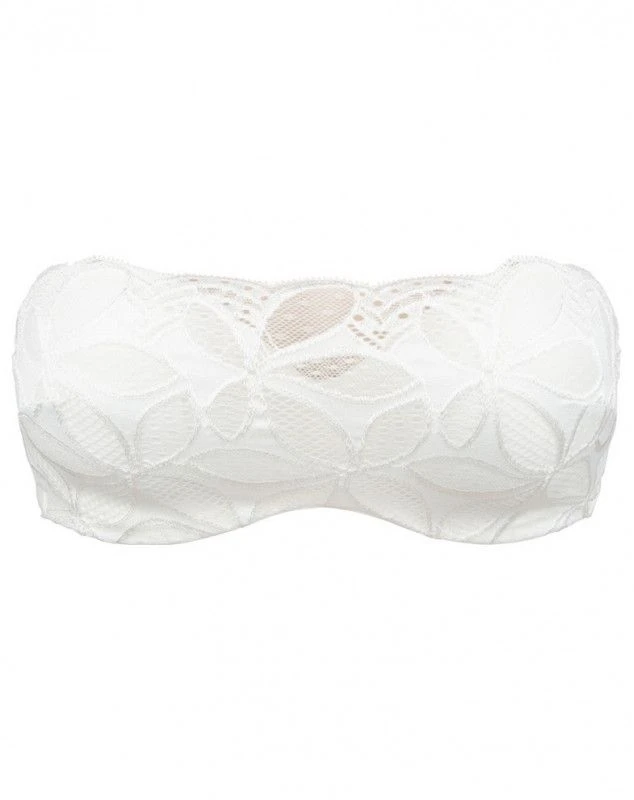 Le bandeau à bretelles amovibles de la marque Antigel offre une dentelle jacquard composée de polyamide recyclé (88%) et d’élasthanne, mono-élastique, au graphisme foral dont l’ajourage de chaque pétale est différent. Sa finesse et son tonique apportent un maintien parfait.
