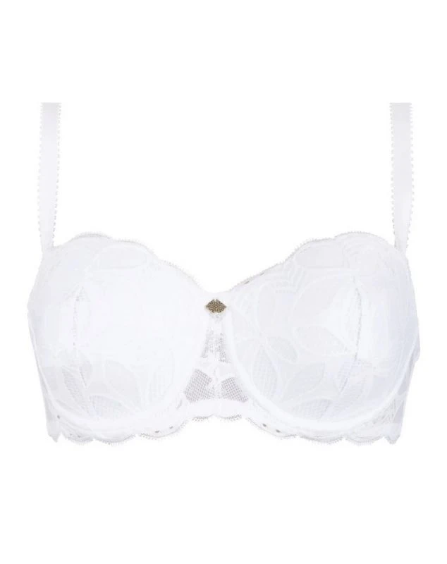 Le Soutien-gorge bandeau confort aux bretelles amovibles Stricto Sensuelle de la marque Antigel propose un galon dentelle jacquard composé de matières recyclées, au graphisme floral unique et détaillé. Les bretelles sont amovibles.