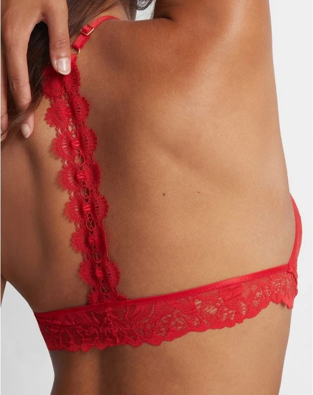 Craquez pour cette bralette triangle Flowermania et son dĂ©colletĂ© ultra plongeant ornĂ© d’un bijou Ă l’entre-gorge ainsi que son dos travaillĂ© charmant.