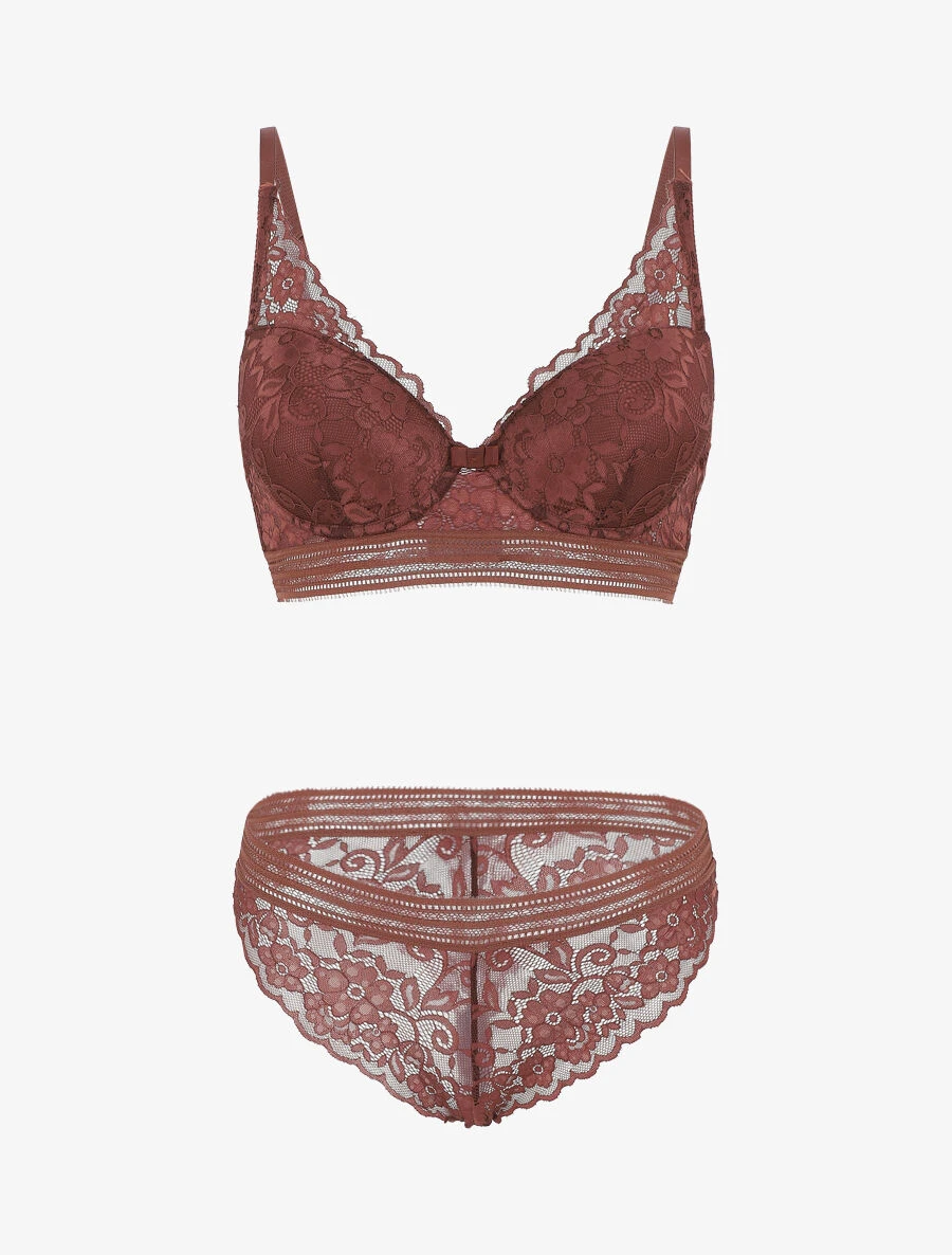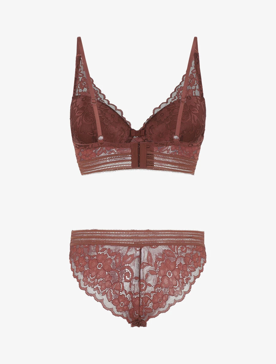 - Ensemble soutien-gorge et shorty en dentelle motif floral