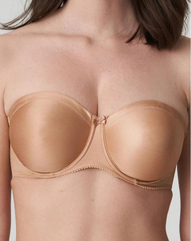 Ce soutien-gorge bandeau moulĂ© PrimaDonna Satin propose des bretelles amovibles et un maitien parfait jusqu’au bonnet G.