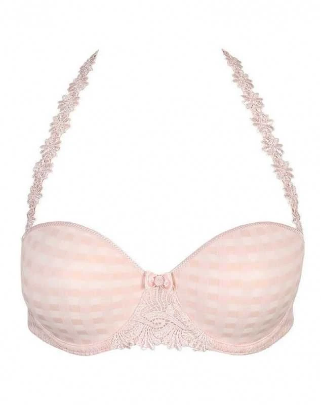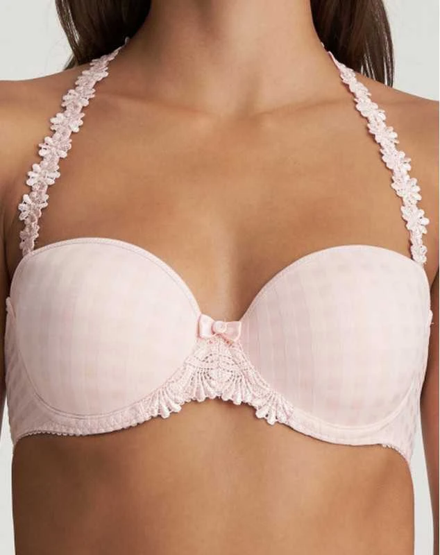 Soutien-gorge Marie Jo à bretelles amovibles à la ligne de décolleté horizontale. Le dos droit intègre une bande silicone pour améliorer le soutien lorsque les bretelles sont retirées.
