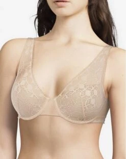 Ce soutien-gorge coque plongeant propose une dentelle souple et raffinée pour un look à la fois quotidien et élégant. Bonnet B à F.